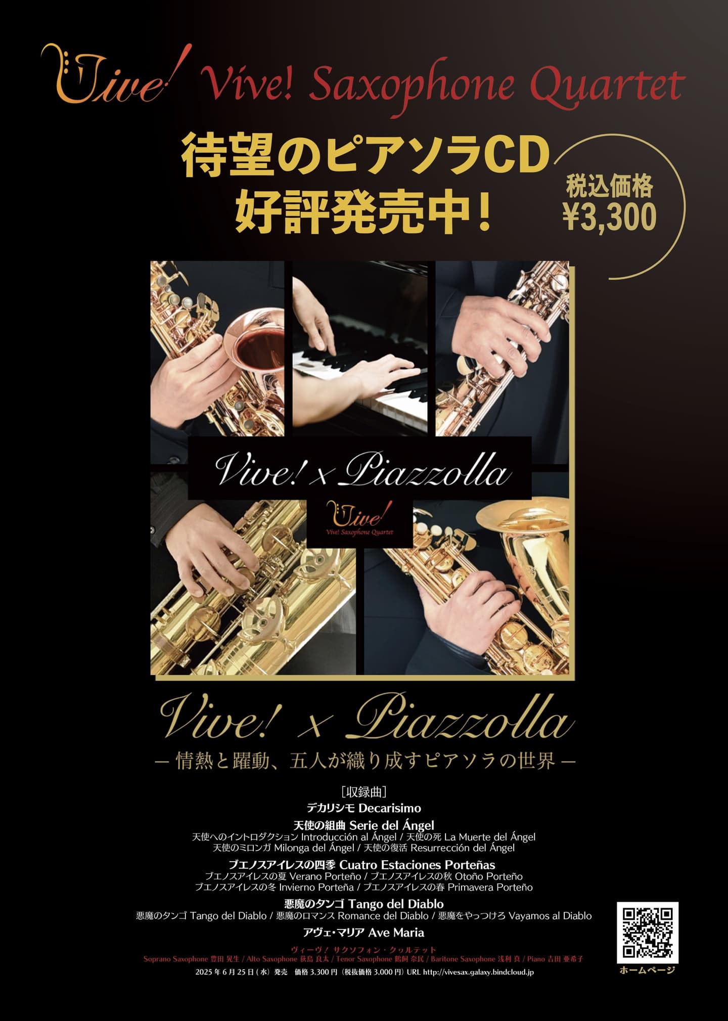 ヴィーヴ!がこれまで演奏してきたピアソラ作品の中から厳選した5作品を収録したCDがワコーレコードよりリリースされました。長い時間で積み重ねてきたピアソラへのオマージュとメンバーの想いが詰まったアルバムです。是非とも当サイトよりお買い求めください。
